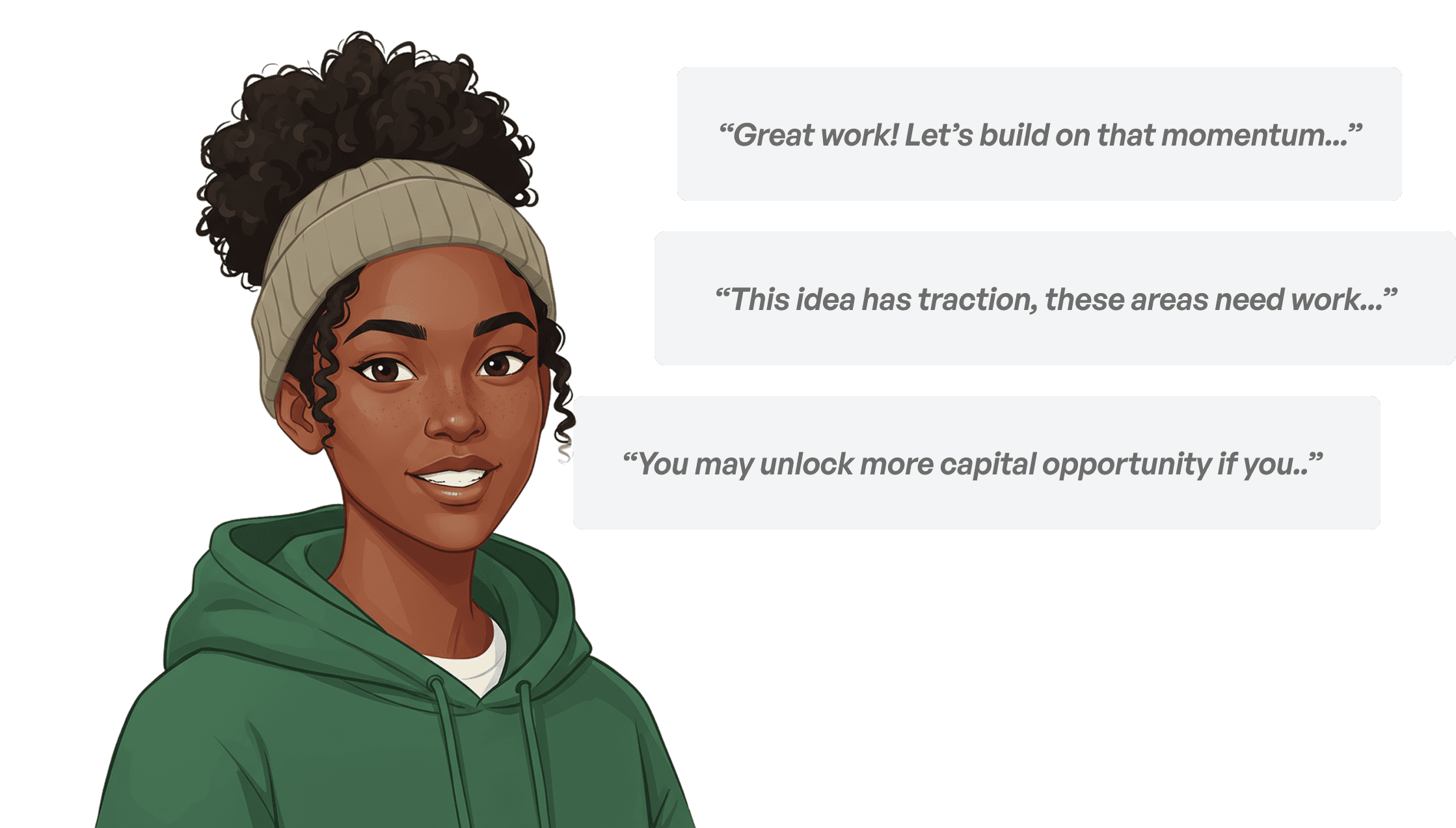 Our guided intake captures your story in plain language. AI-assisted planning helps you refine your model, financials, and go-to-market strategy—with a clear roadmap to capital readiness.